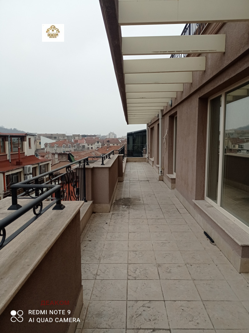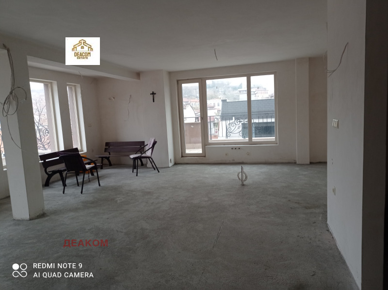 Деаком имоти Ви предлага Панорамен апартамент с три спални, едната от които със самостоятелна голяма баня, втора баня и тоалетна, мокро помещение и гардеробна. Отворена просторна дневна с трапезария и кухня, като целият апартамент има излаз на тераса с прекрасна гледка към идеалния център на града. Гараж, който се намира на партерно ниво и е с площ от 27кв.