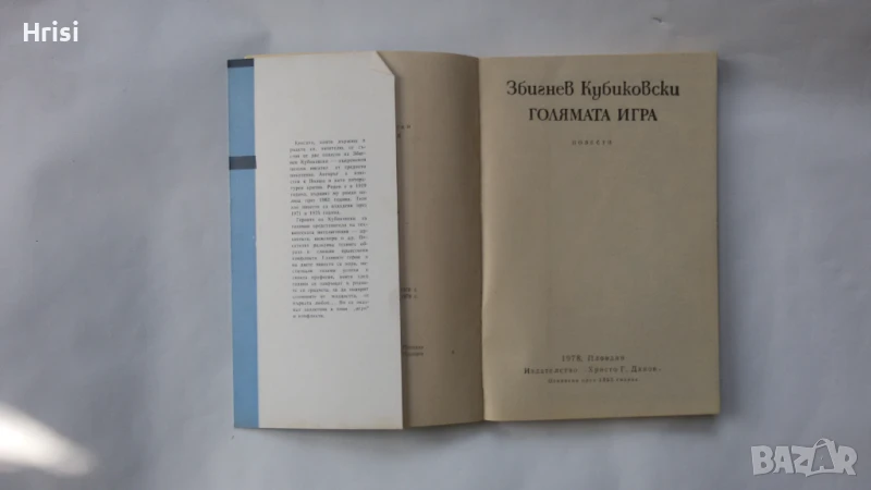 Голямата игра-Збигнев Кубиковски, повести, изд. "Христо Г. Данов", второ изд. 1978г., с обложка,нова, без забележки
