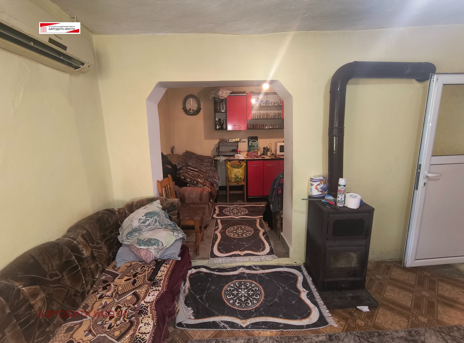 Площта в къщата е разпределена между коридор, хол с кухненски кът, спалня и външна баня с мокро помещение.