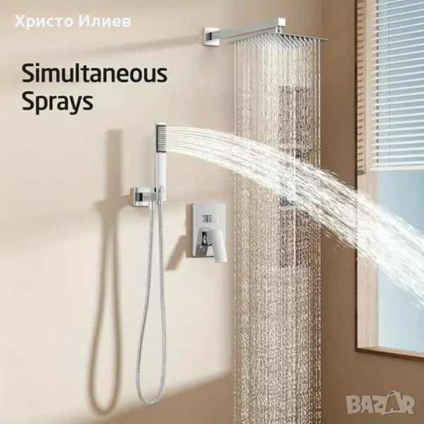 Душ система за вграждане с термостатен Смесител за баня Квадратен