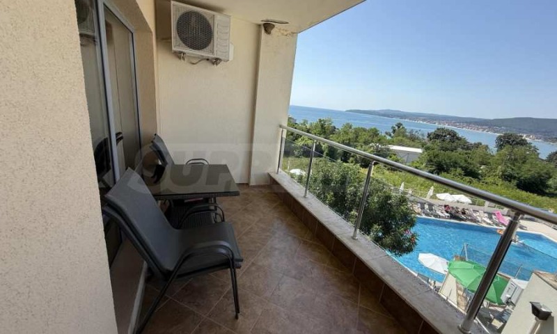 просторна тераса с гледка към морето и басейна.