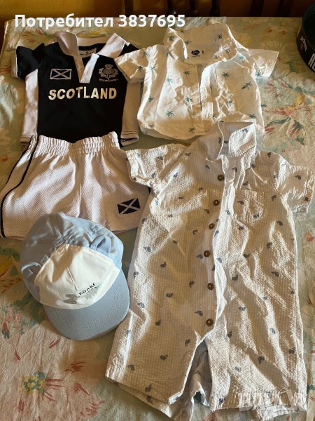 Сета включва спортен комплект,шапка,боди,риза и сини нови слушалки