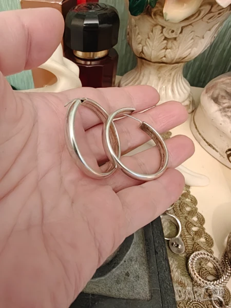 Масивни сребро 925 Обеци Халки на СБХ диаметър 3,5 см . Пръстен на фосил тип халка масивен маркиран оригинален размер 16,5.Цената е за лота Не се продават отделно Без коментар.