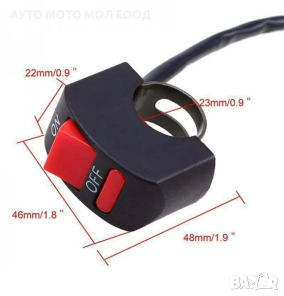 Превключвател на кормилото на мотоциклет с бутон за включване/изключване.