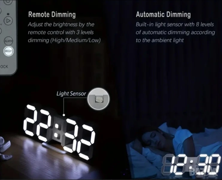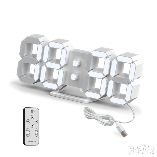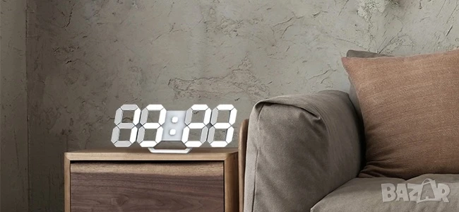 3D LED дигитален стенен часовник, дистанционно, температура, аларма