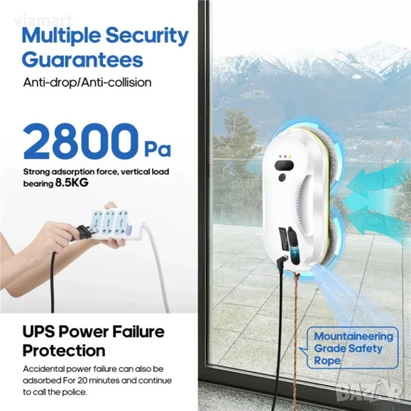 • Всмукателна мощност 2800 Pa – стабилно закрепване върху стъкла и огледала