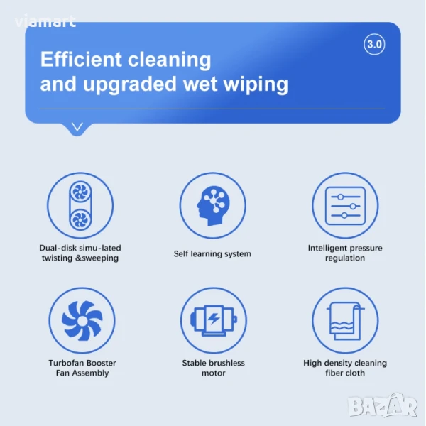 • UPS защита – батерия, която задържа робота до 20 минути при спиране на тока
