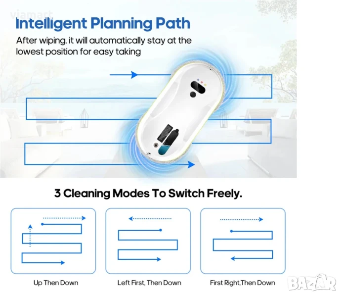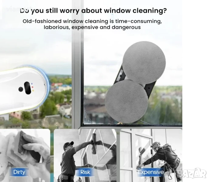 Роботът е подходящ за дома, офиса или търговски обекти с големи витрини и труднодостъпни стъкла.