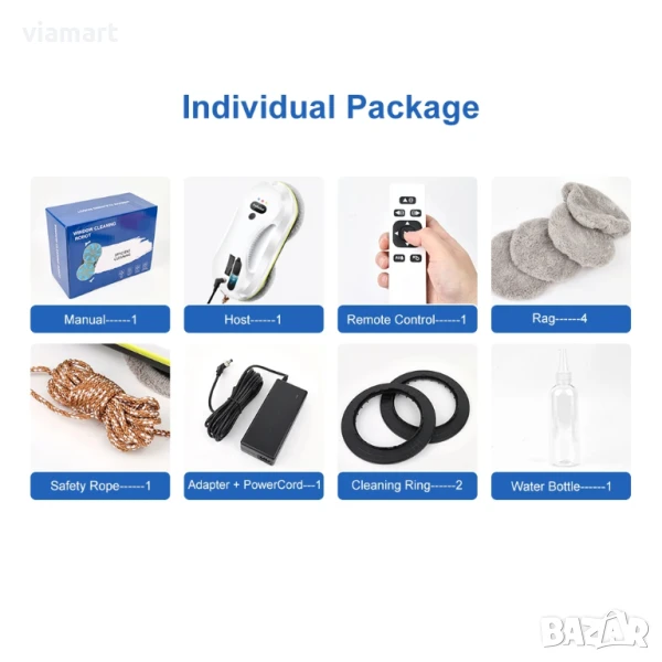 • Дълъг кабел + удължител (общо 5.5 м) за достигане на високи прозорци
