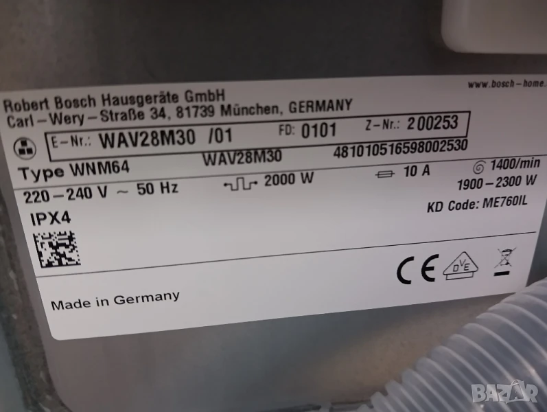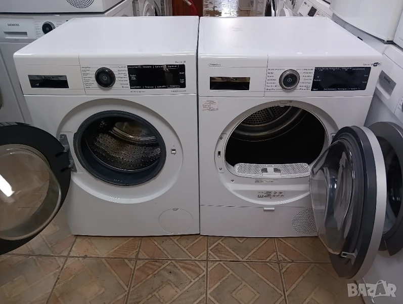Комплект пералня Bosch Serie 8 A+++ 9кг и сушилня с термопомпа Bosch Serie 8 WI-FI 2 години гаранция