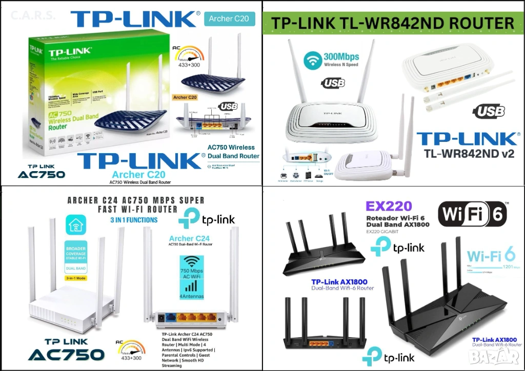 TP-Link EX220 AX1800 Dual-Band Wi-Fi 6 Router е двубандов рутер, който включва 4× 10/100/1000Mbps LAN, 1× 10/100/1000Mbps WAN и 4 фиксирани антени. Безжичната част може да работи в две честотни ленти едновременно, със скорост от 574 Mbps в 2.4 GHz честотната лента и 1201 Mbps в 5 GHz честотната лента. Рутерът поддържа както IPv4, така и най-новата IPv6 маршрутизация. В допълнение към най-използвания режим на AP рутер, рутерът поддържа и режим на Access point. - 33 EURO