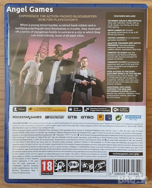 GTA 5 Grand Theft Auto V PS5 Playstation 5 Плейстейшън диск игра коли, снимка 1 - Игри за PlayStation - 51425932 GTA 5 Grand Theft Auto V PS5 Playstation 5 Плейстейшън диск игра коли, снимка 2 - Игри за PlayStation - 51425932 GTA 5 Grand Theft Auto V PS5 Playstation 5 Плейстейшън диск игра коли, снимка 3 - Игри за PlayStation - 51425932 GTA 5 Grand Theft Auto V PS5 Playstation 5 Плейстейшън диск игра коли, снимка 4 - Игри за PlayStation - 51425932 1/4