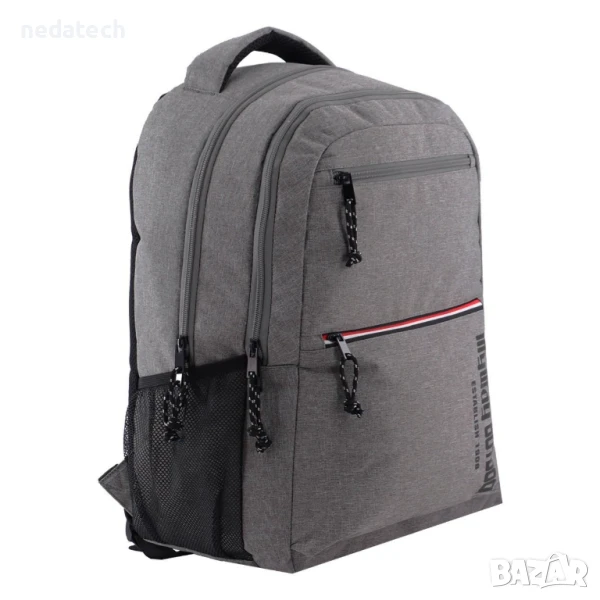 Ученическа в сив цвят с дънкова текстура. Разполага с 2 големи отделения с вътрешно отделение за лаптоп, външни джобове с цип и мрежести джобове отстрани, декоративна лента и щампа "My Way". Има регулируеми презрамки, мек гръб и дръжка.
