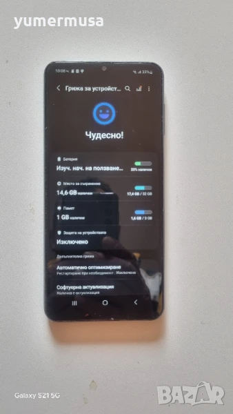 Предлагам технически,и козметично много запазен смартфон Samsung Galaxy A04S.Доста запазен за времето си.Отлично работещ.Със 32GB вътрешна памет.Без акаунти,и парола.Доста издръжливост на батерията.Предлага се единствено със зарядно устройство,и 16GB micro SD карта.Моля,разгледайте останалите ми обяви.Благодаря.