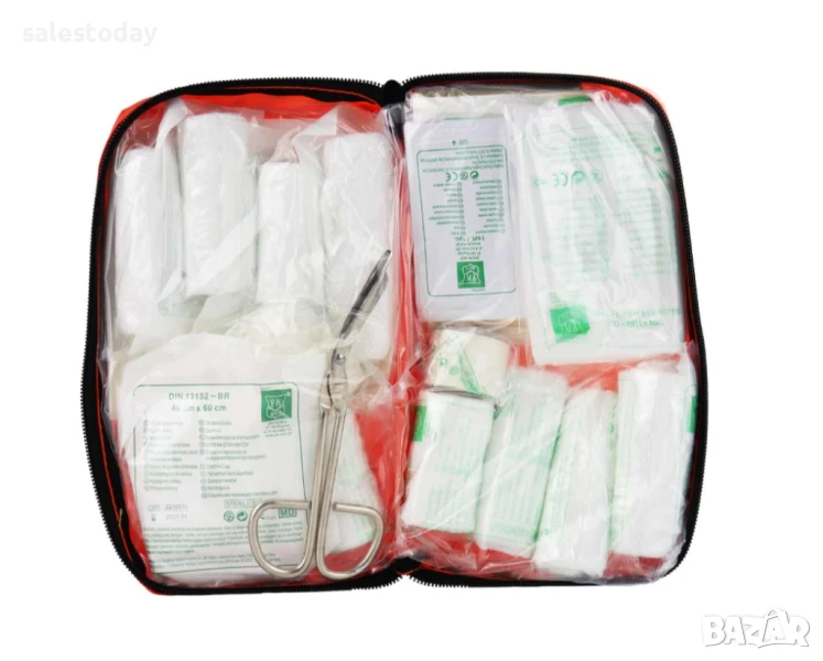 Аптечката съдържа водоустойчива платнен калъф. Това ви позволява да използвате аптечката навсякъде при различни условия. Съдържа най-необходимите превръзки за пътуване.