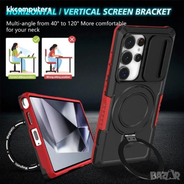 Samsung Galaxy S25 Ultra Удароустойчив Ring Holder MagSafe/ PC + TPU Калъф и Протектор