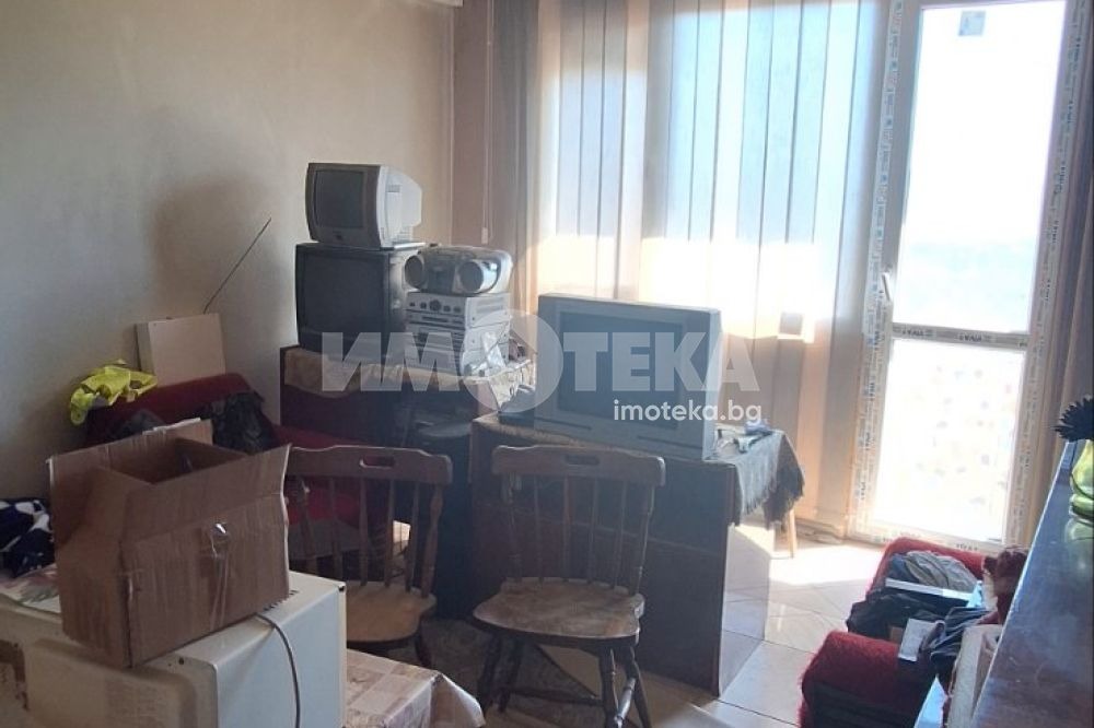 ИМОТЕКА продава тристаен апартамент, който се състои от две спални, хол, кухненски бокс, баня, тоалетна, килер, коридор и тераса пред всички стаи. Изложение Юг. Панелна сграда без асансьор. Състояние - за ремонт.