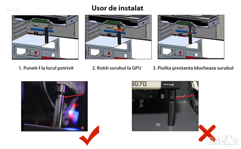 【Дизайн за регулиране на винта】 Минималният размер на държача на GPU е 4,9 cm, а максималният размер е 8 cm. Съвместим с ATX, M-ATX, ITX структура на шасито и универсална поддръжка за VGA графични карти. Запознайте се с различни хостове потребители, за да избегнете срив на видеокартата.