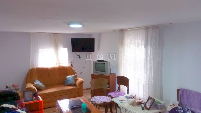 Агенция за имоти ДОМ предлага за продажба Едноетажна къща с голям двор. Къщата разполага с три стаи, кухня, лятна кухня, две бани с тоалетни и маза под цялата къща В двора има селскостопанска пристройка- 26кв.м.