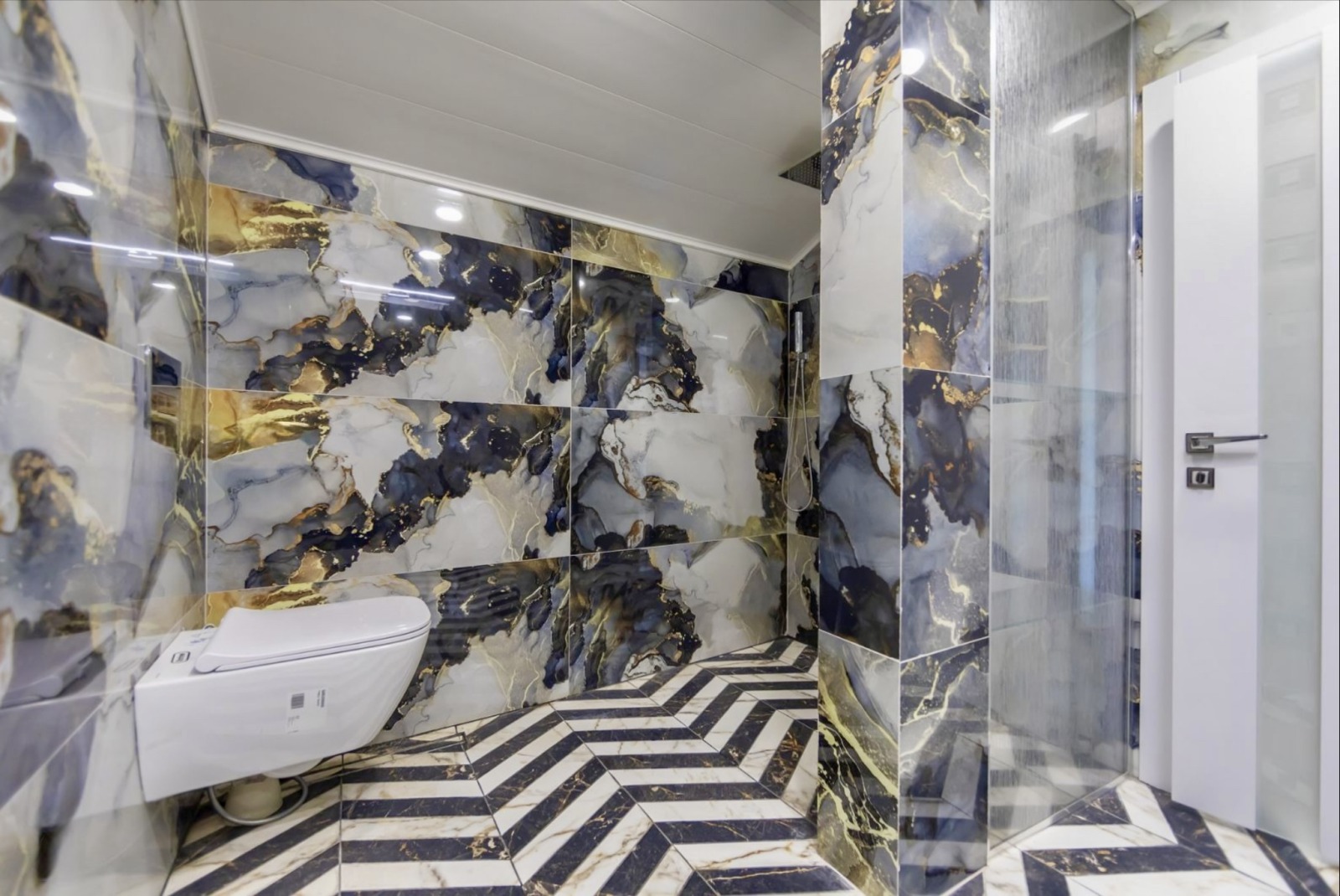 Облицовка от естествен камък, подово отопление, климатици от висок клас.