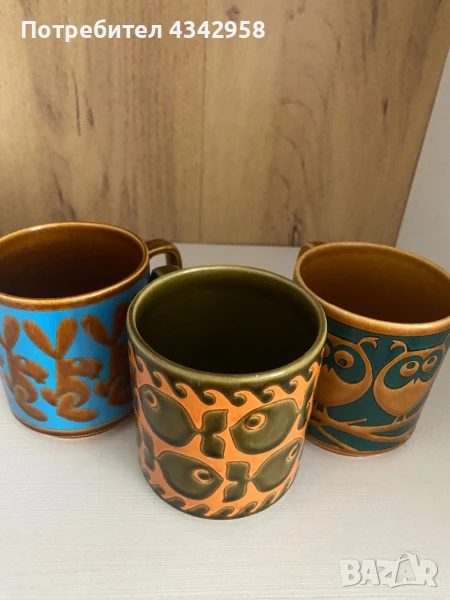 Чашите с от Hornsea Pottery са уникална и колекционерска находка от 1972 г.Чаши произведени в Обединеното кралство и е един от дизайните на Джон Клаписън. С диаметър 7,6 см и височина 9см, тези чаши са идеални за всички поводи и ще се хареса на широк кръг колекционери. Има следи на употреба.Цената е за брой.