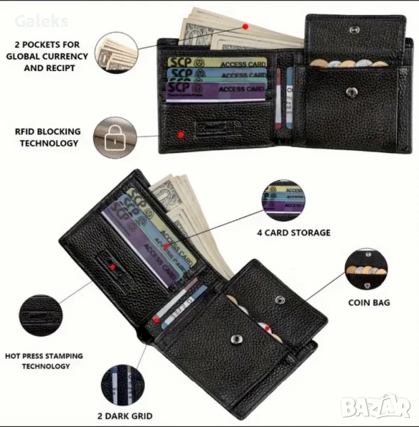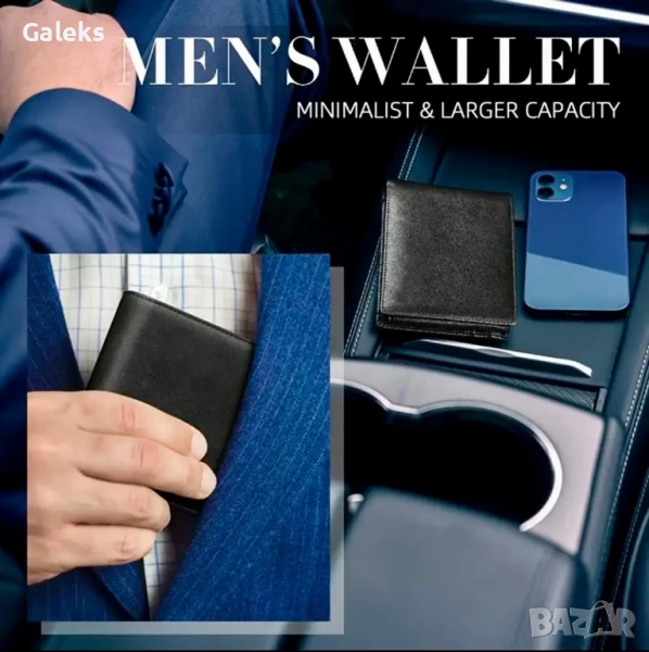 Мъжки защитени, елегантни и изискани портфейли с две лица /Черна естест. кожа!