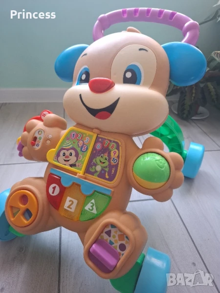 Проходилката е неразличима от нова, с нормални следи от употреба по гумите! Всички функции работят! Няма кутия! Цена в магазин -над 90лв! Хайде да се разходим! Кученцето е идеалният приятел за вашето растящо бебе, предлагащ вълнуващи практически занимания за малките подрастващи, както и много насърчителни фрази в подкрепа на тези първи малки стъпки. Докато малките растат, Кученцето ще ги запознае с азбуката, формите, цветовете и броенето. Малките мускули получават една добра тренировка, докато седящите малчугани посягат и извършват различни движения, а след това се изправят, за да застанат и вървят зад проходилката. Докато бебетата откриват как да активират музиката и фразите чрез натискане на бутоните или натискане на проходилката, те виждат, че техните действия могат да направят забавни неща - хей, това е причина и следствие! 2 начина да игра, докато бебето расте: игра в седнало положение или изправете се и ходете! Многото песни, звуци и фрази представят азбуката, формите, цветовете, цифрите и още. Промени в учебното съдържание с възрастта и възможностите на бебето с технологията Smart Stages ™. Дръжката за лесно хващане помага за стабилните първи стъпки на бебето.