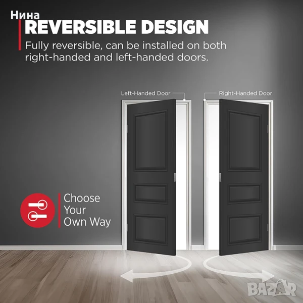 🚪 Може да се монтира както на десни, така и на леви врати