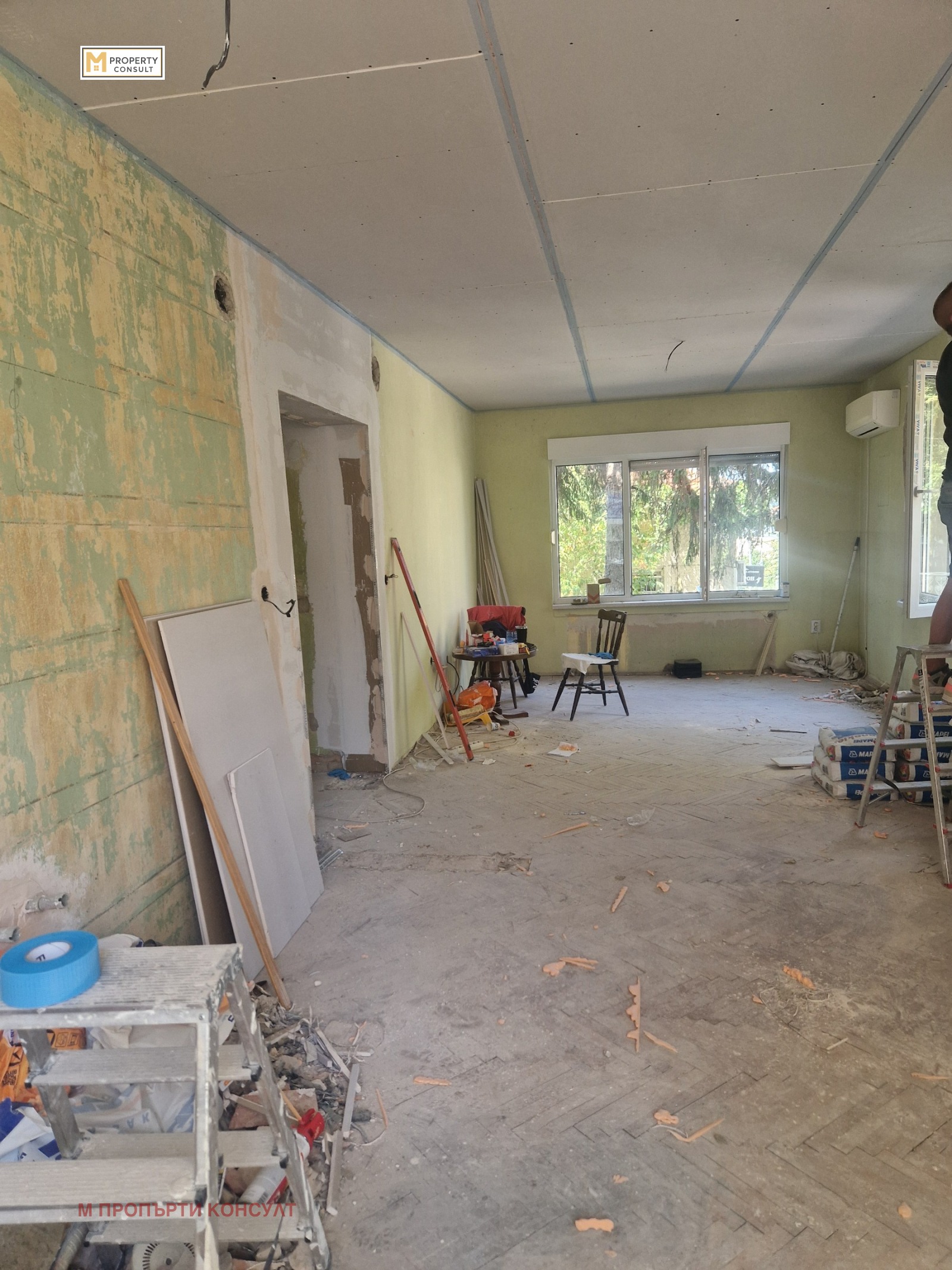 Оферта 225. Агенция за недвижими имоти М-Пропърти Консулт Ви предлага тристаен апартамент находящ се в идеалния център на града на пешеходно разстояние от площада. Жилището се състои от две спални, хол с кухня-40 кв. м., баня с тоалетна и перално помещение и ще буде отремонтирано изцяло. Отоплението е с ТЕЦ и климатици. Към апартамента може да се закупи гараж-17 кв. м. на отделна цена. За повече информация и огледи тел: 0878542626