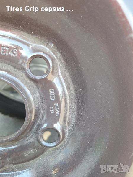 Желязна джанта с гума 195/65/15 6j x 15 et 45 подходяща за audi и VW Може да се ползва за резервна гума тип патерица!