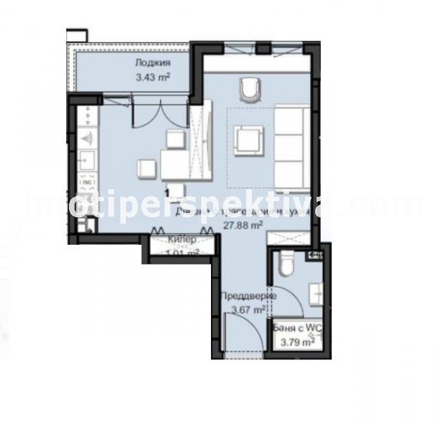 Предлагаме Ви страхотен апартамент в новострояща се луксозна сграда на много спокойно и зелено място в един от най-привлекателните квартали на Пловдив ! Жилището се състои от просторна дневна с кухненски бокс , вх.антре , баня с тоалетна , тераса, килер и избено помещение. Имотът е разположен на СРЕДЕН ЕТАЖ и е с функционално и удобно разпределение . Сградата се строи от утвърден строител с множество готови обекти , като ще бъде завършена съгласно всички европейски стандарти при технологията и качеството на строителство : стилна фасада, луксозни общи части , Постигнати високи нива на енергийна ефективност! Възможност за покупка на паркомясто или гараж!!!
