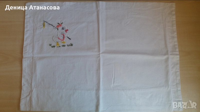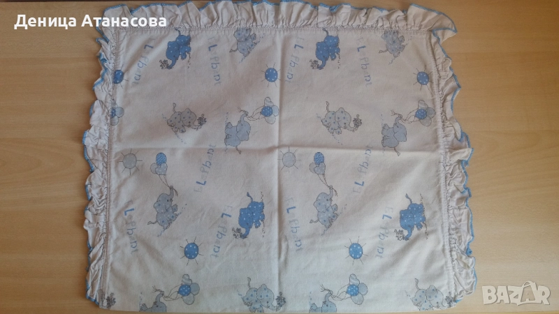 - Налична е още една възглавница 30/40 см и две бели калъфки едната на сини слончета 30/40 см и едната с бродирано пате 33/44 см - по 2 лв.