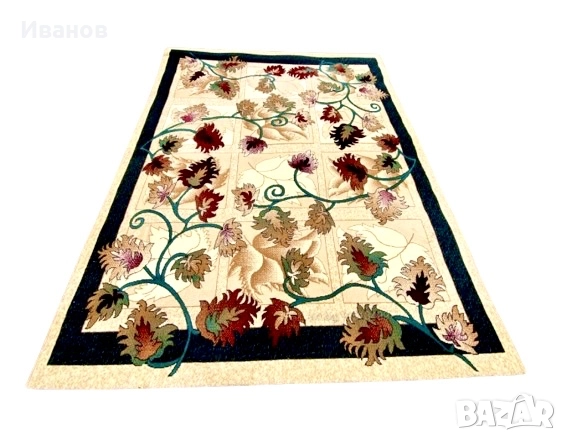 Топ ЦЕНА - 35€. НОВ - ГОЛЯМ Килим - Шарка с цветя - Кремав - 240х330см → Обява 51431956
