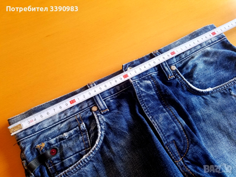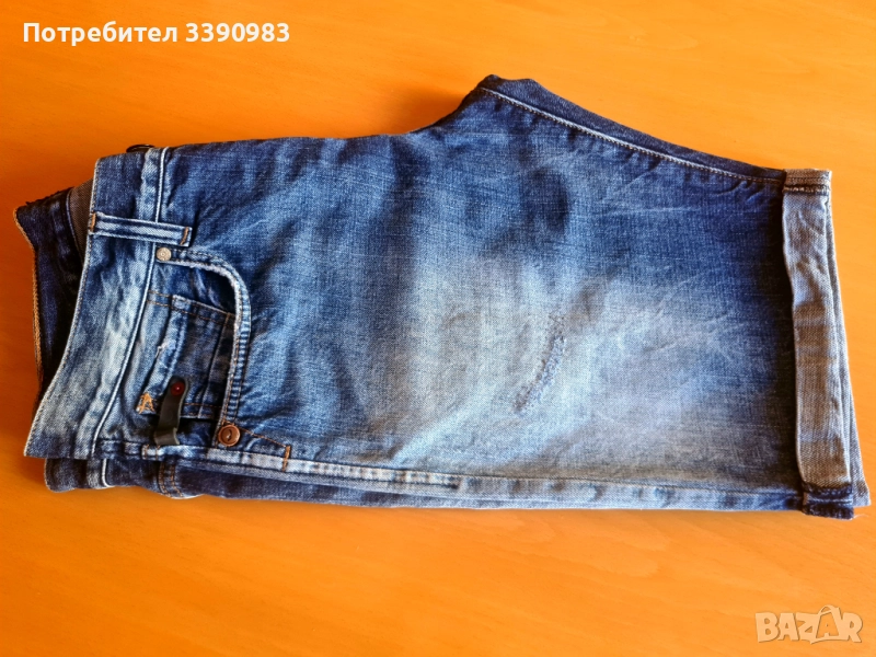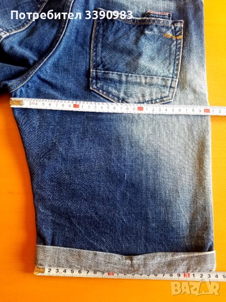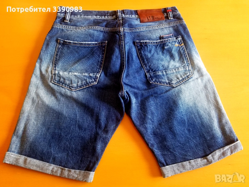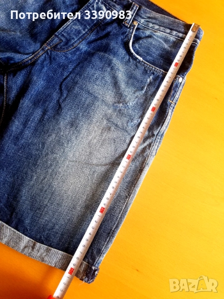 Дънкови къси панталони, с елементи на изтъркано и закърпено, мъжка номерация M, запазени, много малко ползвани.