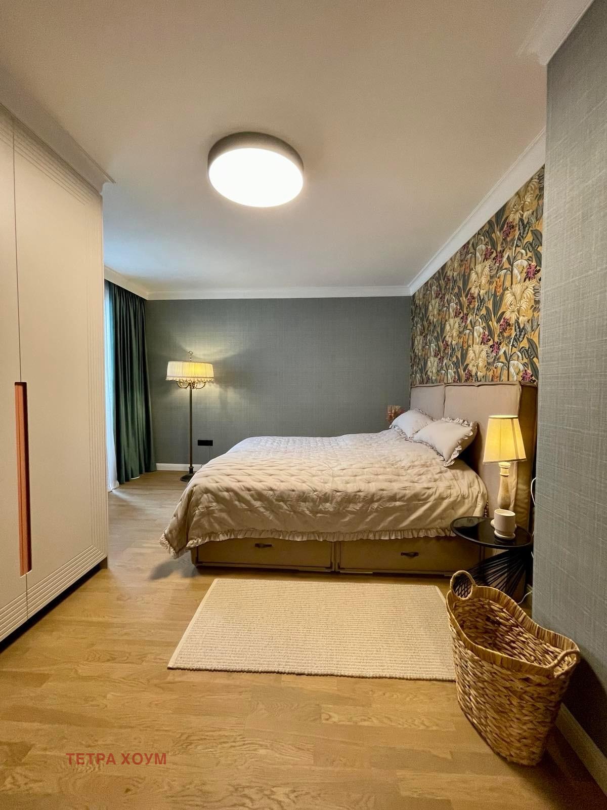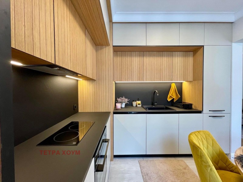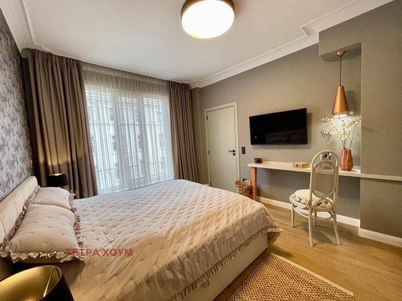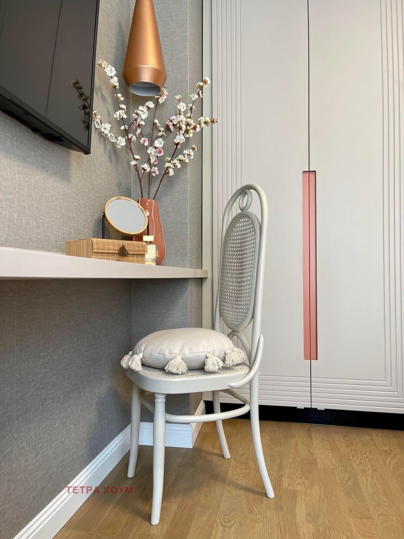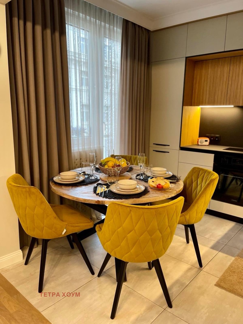 Апартаментът се предлага напълно обзаведен и оборудван с висок клас мебели и уреди, след основен ремонт, по индивидуален дизайнерски проект.