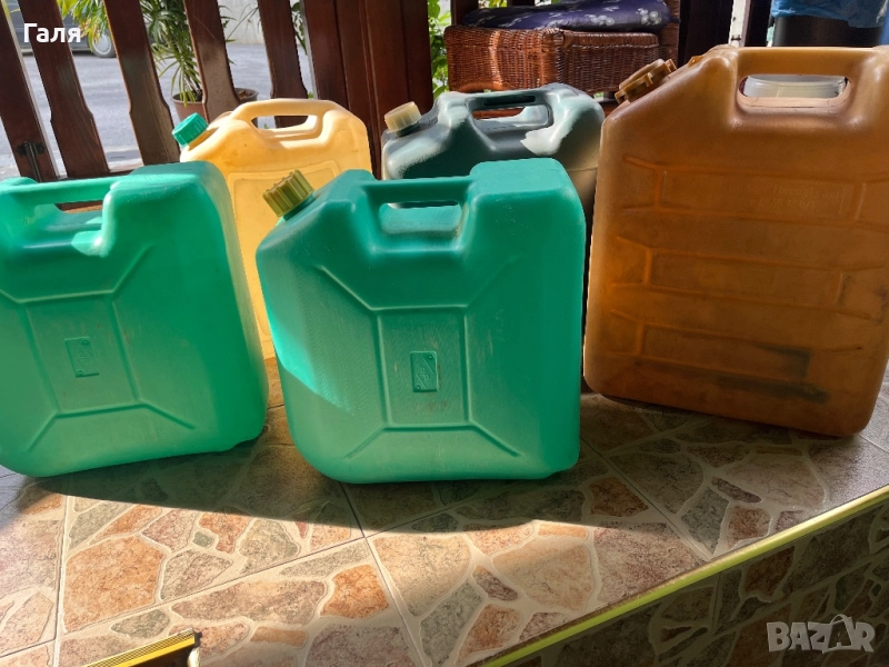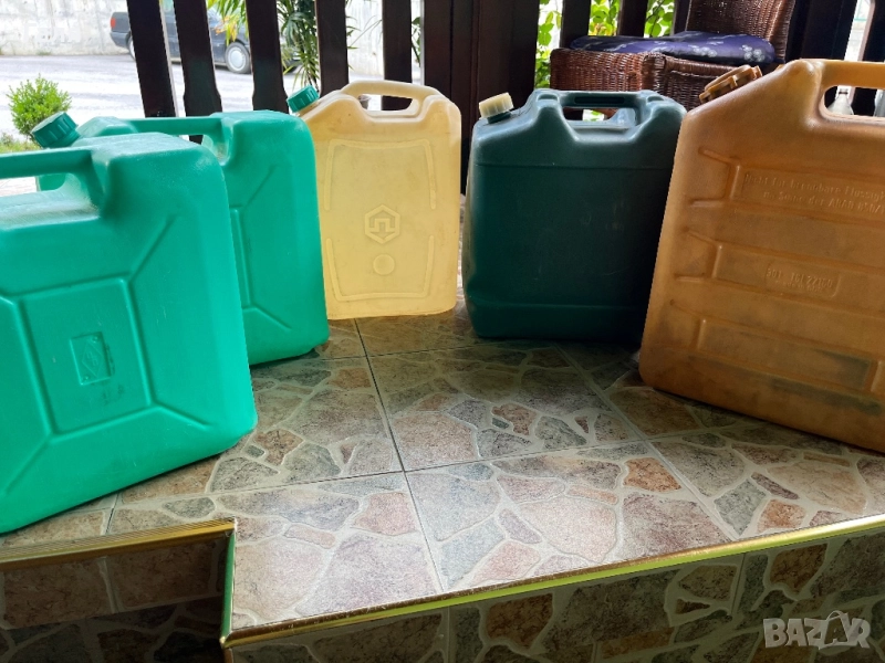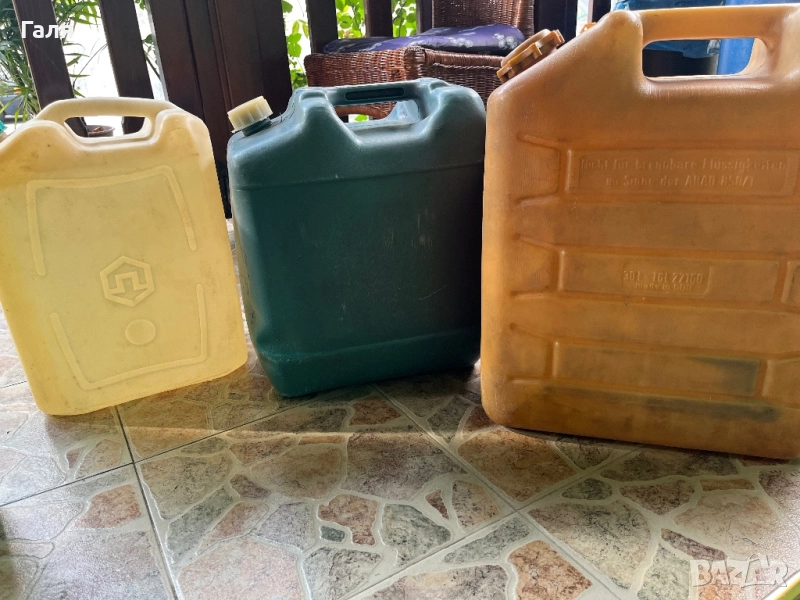 Пласмасови туби- някой са нови, други използвани по веднъж. Но от стоянето са пожълтяли. Може да се използват с различно предназначение.1 брой по 25 литра., 1 брой- 30 л, и 3 броя-20 литра