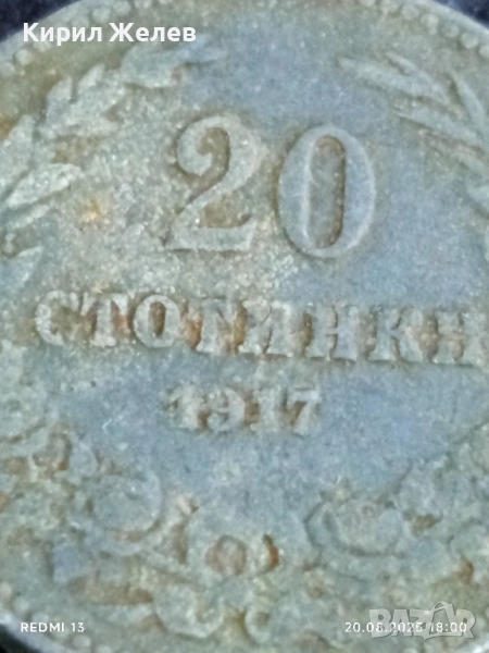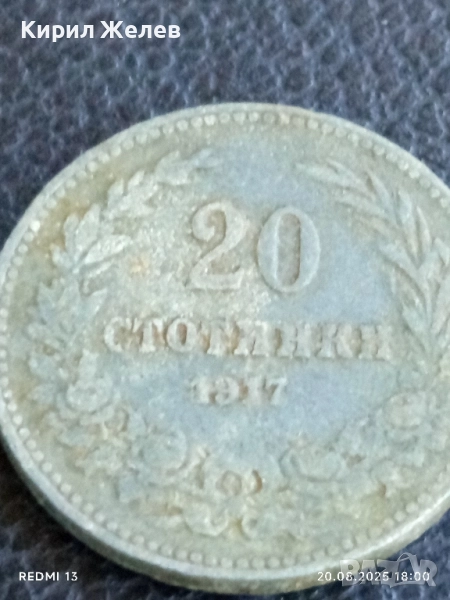 Стара монета 20 стотинки 1917г. Княжество България за КОЛЕКЦИЯ ДЕКОРАЦИЯ 44203