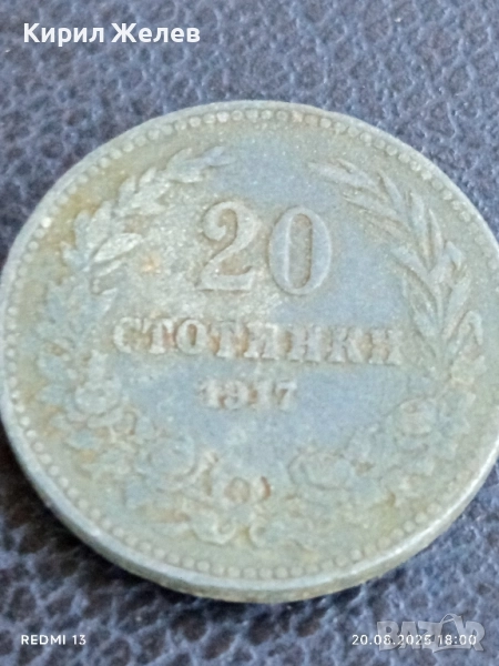 Стара монета 20 стотинки 1917г. Княжество България за КОЛЕКЦИЯ ДЕКОРАЦИЯ 44203 → Обява 51432736
