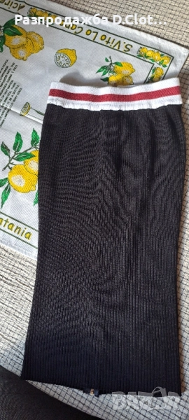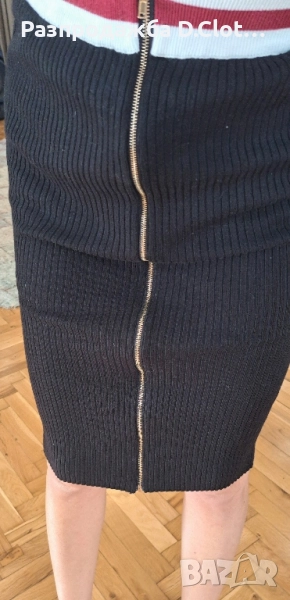 Пола с висока талия с цип отпред, става и за М.По етикет е S размер. Интересен модел,защото може да се носи и като рокля,като се вдигне нагоре.Дължината е 65 см .