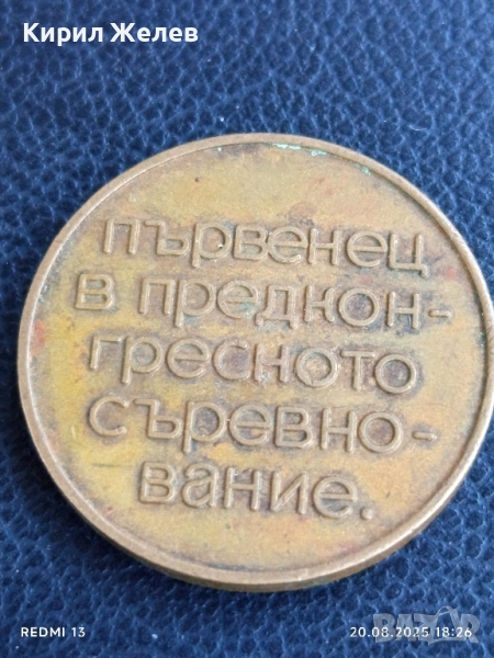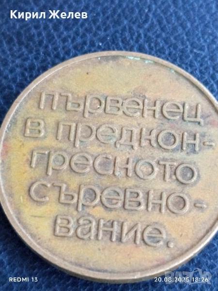 Стар медал от соца ПЪРВЕНЕЦ В ПРЕДКОНГРЕСНОТО СЪРЕВНОВАНИЕ 42367