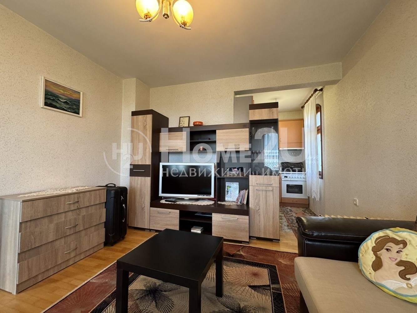 Втори етаж: всекидневна с кухненска част, две спални, баня с тоалет и голяма тераса с гледка - море.