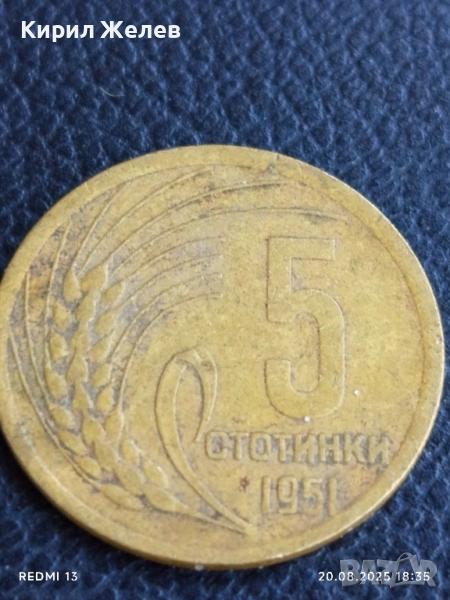 Монета 5 стотинки 1951г. НРБ от соца за КОЛЕКЦИЯ ДЕКОРАЦИЯ 26751 → Обява 51433154