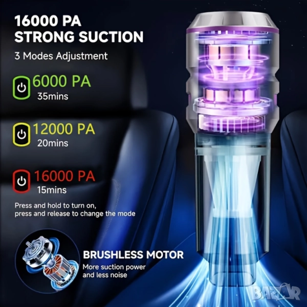 ✅ Мощност на засмукване: 16 000 PA – ефективно премахва прах, трохи, косми от домашни любимци и мръсотия.