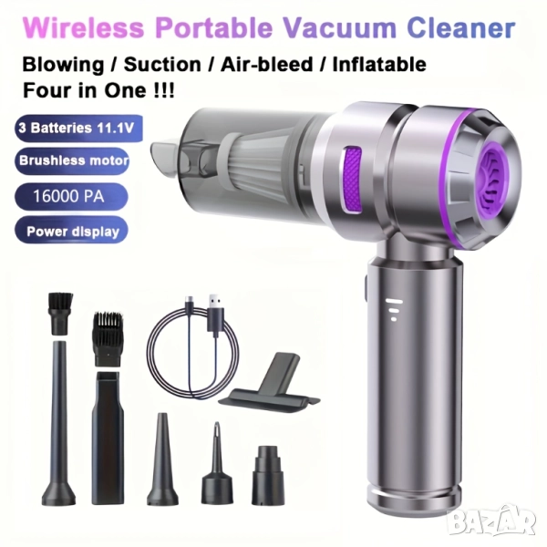 Безжична Преносима Прахосмукачка HL-121 – 4-в-1 Мини Уред за Дома и Автомобила, 16000PA!