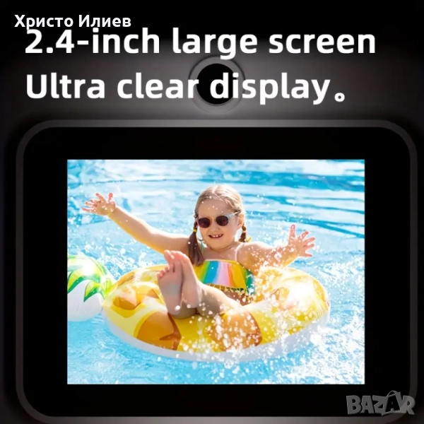 【Висококачествен дисплей】Разполага с 2,4-инчов IPS екран за ясно и приятно за очите гледане на заснетите изображения и видеоклипове.