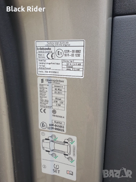 Нивото на оборудване е Comfort Line с добавени допълнителни екстри, като: преден и заден парктроник, оригинален теглич с опция демонтаж, ел. сгъване на страничните огледала с подгрев, пълен ел.пакет, отделна климатизация за заден ред седалки, опциия сън - задните седалките стават на равно легло - наличен е и матрак по формата на колата, хладилна чанта/ бокс VW, автоматична ел. плъзгаща странична врата, сгъваема масичка,отделения за багаж под седалките, вградени щори, печка с дистанционно, блутут връзка към аудиосистемата и др.