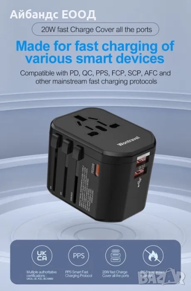 С този многофункционален адаптер няма нужда да носиш различни зарядни за всяка страна. Съвместим с над 200 държави и региона, той предлага удобство и сигурност, независимо къде се намираш – от Европа и Азия до САЩ, Австралия и Великобритания.