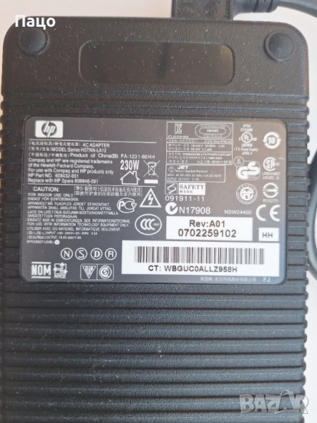 HP AC Adapter HSTNN-LA12 230W 19.5V 11.8A / 1/Оригинално зарядно за лаптоп HP ZBook 17 G4, G3, G2 - 230W 19.5V 11.8A, HSTNN-LA12 щепсел тип 7.4 x 5.0 mm с щифт - 8770W/ 8760W/ Zbook 15 G2/ HP OMEN/ PA-1231-66HH / 8560p/с опция преглед и тест/Цената е Твърда,символична/