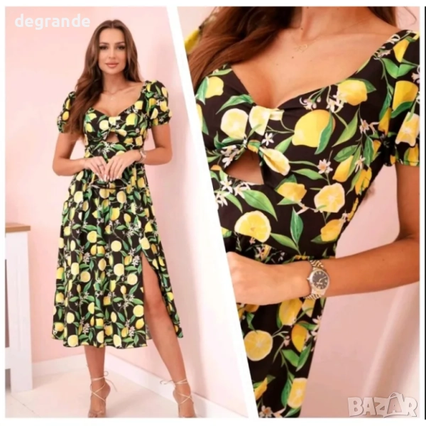 Рокля с лимони с миди дължина, снимка 1 - Рокли - 51436294 Рокля с лимони с миди дължина, снимка 2 - Рокли - 51436294 1/2