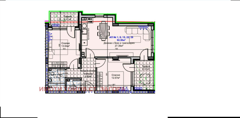 Дневен тракт с кухня и трапезария-27,36 кв.м.;